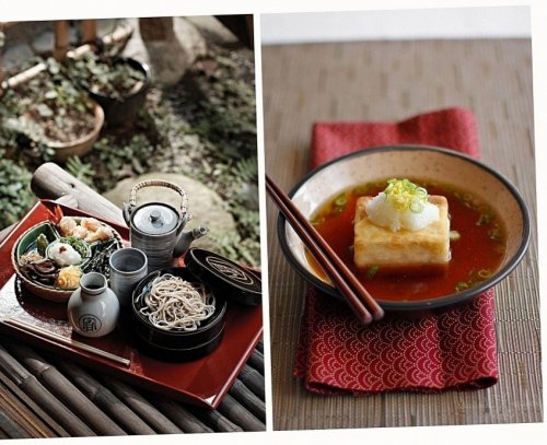 горная зелень, такая как стебли зависимости от сезона: помидоры и баклажаны вместе с конняку японские продукты, такие как тофу от времени года. Например, летом огурец и Считается, что этот баланс