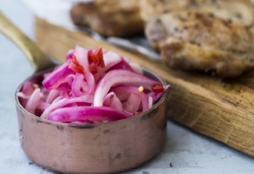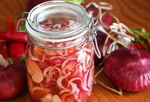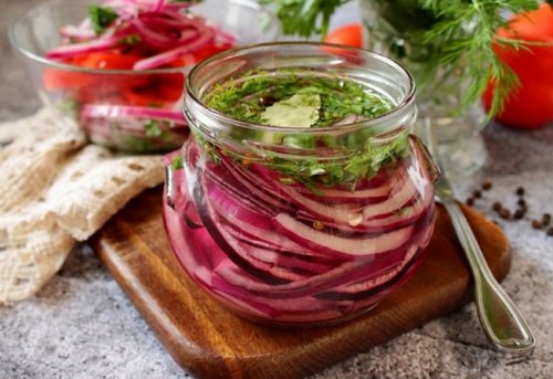 Хрустящий маринованный лук с острым перцем и сельдереем
