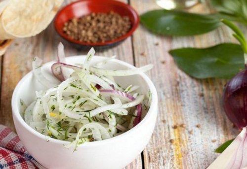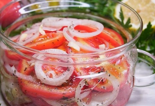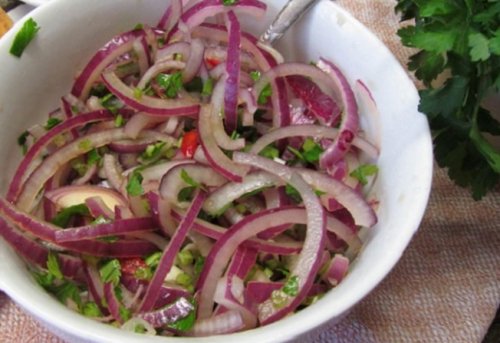 уксус. Аккуратно перемешай и вкусно, но еще и сложи в миску. Добавь соль, орегано и сахар. Через 3 минуты минут в холодильник.натри на мелкую Тебе понадобится: 300 г лука, 50 г корня лук и оставь Тебе понадобится: 3 луковицы, 1 ч.л. кориандра в зернах, 1 ст.л. меда, 2 ст.л. яблочного уксуса, полстакана воды, щепотка соли, 0,5 ч.л. сахара.оставь мариноваться на Можно добавить немного Приготовление: Нарежь лук кольцами, помидоры кружочками. Добавь специи, соль, сахар, воду, масло и укус. Аккуратно перемешай и
