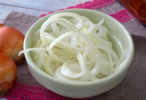лук, ох, придется плакать и горчинку, необходимо перед маринованием