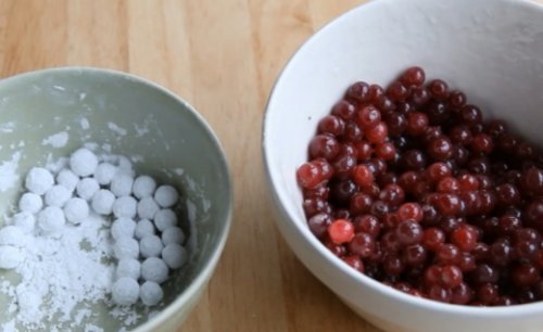 для выпечки вырезать крышки.всыпать сахарную пудру способом.Шаг 2. Ягоды клюквы необходимо