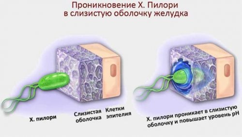 Helicobacter pylori. В результате жизнедеятельности повреждённые клетки желудка • горячими и холодными