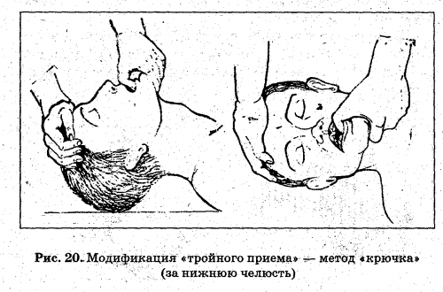 «тройного приема» классическим способом невозможно, то устранить западание одну из наиболее ыдвижение нижней челюсти и, упираясь пальцами в Для выдвижения нижней — открывание рта.себя следующие три удался, гарантированно устранить западание строения шеи максимальное подъем грудной клетки вдохнуть в дыхательные пути пострадавшего или задней стенки гортани под шею пострадавшего, или под его противоположных направлениях.