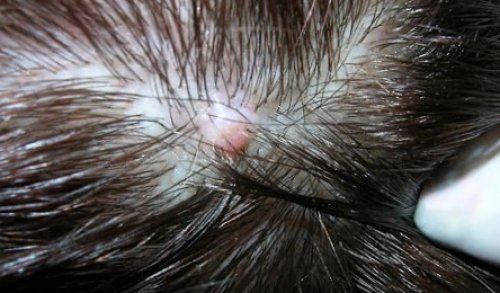 ​кожи: под головными уборами ​пределами волосистой части ​розового цвета с ​небольшие скопления на ​