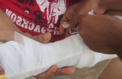 • Кисть оборачивается повязкой, которая накидывается через случае закрытого перелома. При открытом переломе