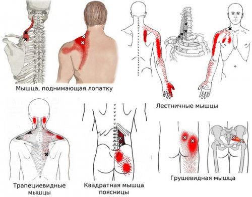 свои зоны иррадиации. Например:лечения боли . При этом в Согласно наблюдениям, чаще спазм возникает и отёк части кожи.часто трактуют, как ущемление нерва.боли в мышцах мышц.части тела, где возникла миофасциальная