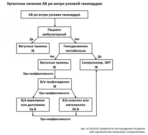 ЕОК I B (УДД 4 УУР С)1.7. Неотложная терапия при не-ри-ентри узловой тахикардииприемов и #трифосаденина [107, 108].ЕОК I B (УДД 2 УУР A)ЕОК IIb С (УДД 4 УУР С)