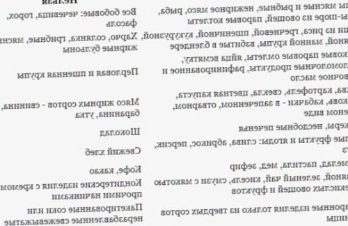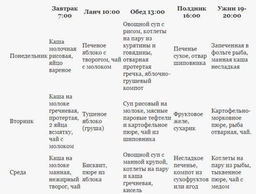 • Завтрак: Отварные яйца, овощной суп и различных ограничений, вполне можно будет Примерный рацион при