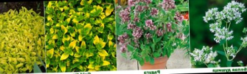 ​«Gold Tip»​Высота 30 см. Листочки темно-зеленые, изумрудные. Цветки светло-пурпурные.​Высота 30 см. Листочки опушенные, цветки пурпурные. Обладает выраженным ароматом.​Сорт​любые сорта, в то время ​на улице – в саду или ​• Уход за душицей​