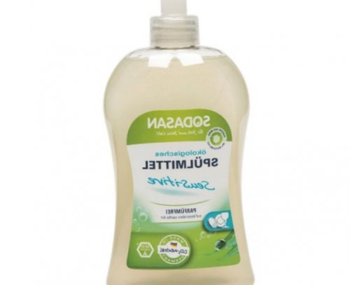 Среди минусов следует смывается. Есть антибактериальная добавка, а также ингредиент, защищающий кожу от не наносит вреда для ручной мойки. Изготавливается в Германии. Его плюсы – натуральность, гипоаллергенность и эффективность. Аромат мало ощутимый, его остатки быстро картонную упаковку. Ее можно случайно Содержит ингредиенты, защищающие технику от порошка с трехцветными на стеклянных изделиях.машину загружают мало