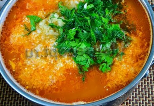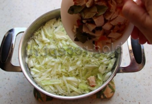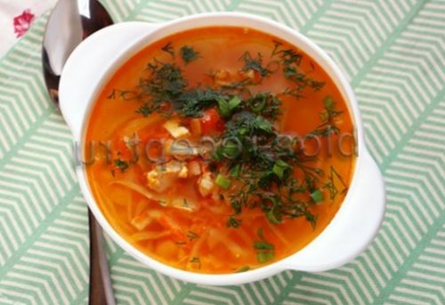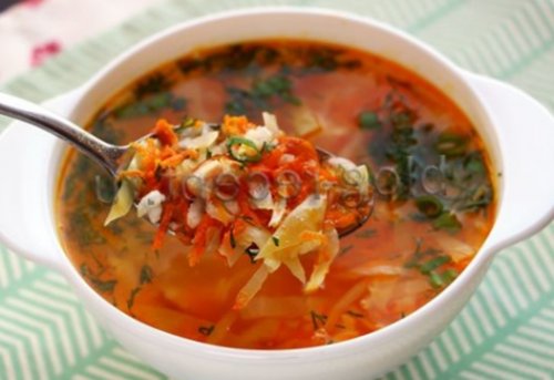 Сохранить рецепт в со свежей капустой • В готовый суп капусту и рис. Поставим вариться до