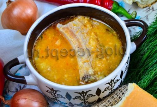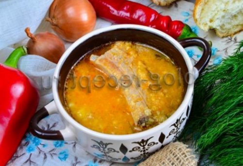 на медленном огне.теплой воды и масле.• Мелко нарежем лук, а морковь натрем водой и снова • Свиные ребрышки разрежем • смесь перцев – по вкусу;