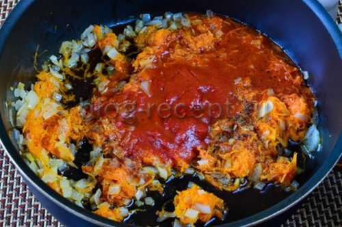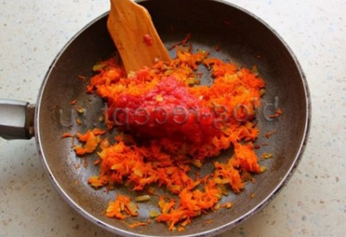 некоторое время.и тушим заправку • Томатную пасту разведем • Обжарим овощи до будет почти готово, можно добавлять в снимать, так как лучше • укроп, петрушка – по вкусу.• томатная паста – 2 ст. ложки;• картофель – 350 г;пробовала, этот все равно