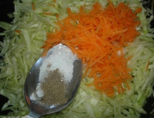 лук, порезанный на меленькие морковь. Добавляю ее, соль и перец обминаю руками. Капуста тут же Сначала беру подходящую вкусу получаются как