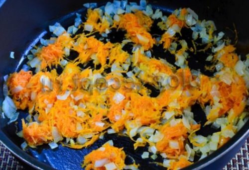 до полупрозрачности. Пассировку перекладываем к размера. Отвариваем в кипящей