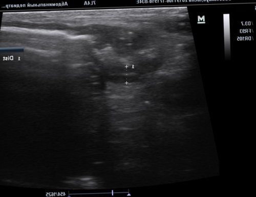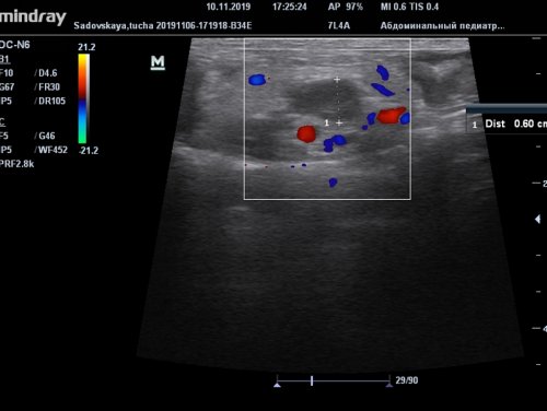 лимфатических узлов (замер курсором), локально отечной брыжейки