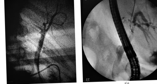 эндоскопической ретроградной холангиографии, эндоскопической папиллотомии, стентирования гепатикохоледоха пластиковым