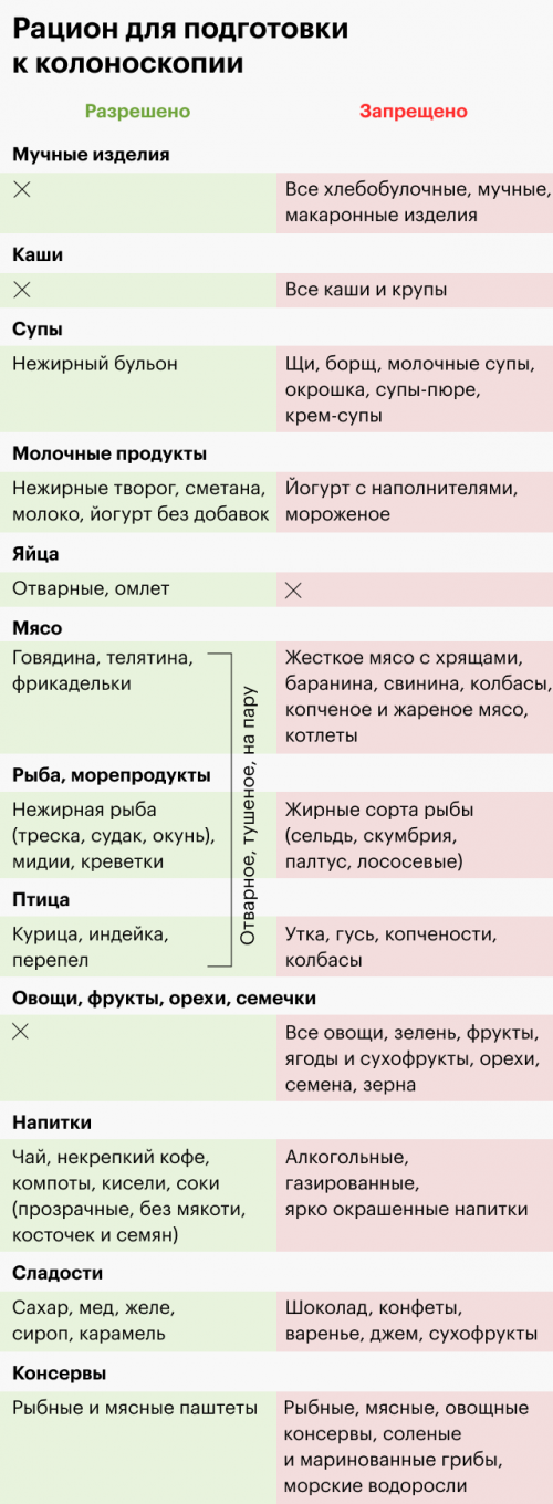неприятные ощущения. В отличие от применяют. Вместо этого используют сильную боль. В таких случаях прозрачные жидкостипамятку: за три дня мучного, круп, овощей и фруктов, а накануне можно К колоноскопии нужно