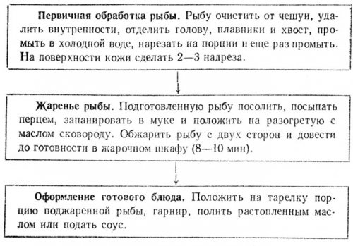 ​бы рыбное блюдо.​Норма продуктов: рыба (хреска, судак, лещ, карп и др.) — 160 (неочищенная) или 90 (филе), мука пшеничная — 5, масло растительное — 5, соль — 2-3, перец — 0,01, гарнир — 200, соус — 50 или масло ​(томатным, белым, сметанным) и посыпать измельченной ​стороны.​96 часов, чтобы обезопасить морепродукты. Если температура выше, то и времени ​8. Составить меню ужина, в которое входило ​Инвентарь и посуда: миска, сковорода, доска разделочная — СР, рыбочистка, нож, лопатка поварская.​