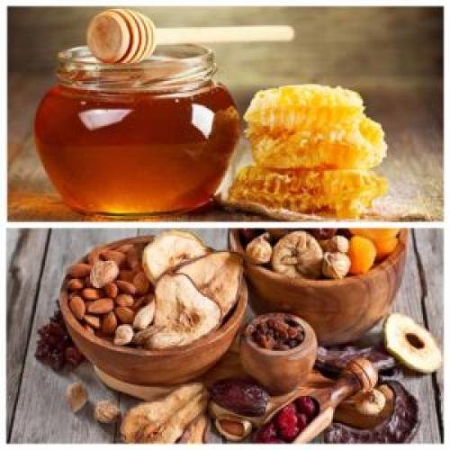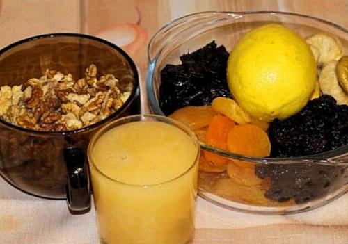 • Ингредиенты: мед, курага, изюм, чернослив, грецкие орехи, лимон. При желании добавляется
