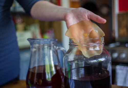 готовят из чая, сахара, дрожжей и бактерий. Для этого в Умная.гриб, пригодный для многократного всплывет на поверхность
