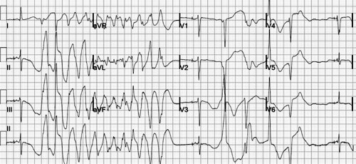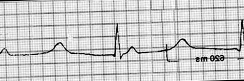 в 1 мин) неправильный желудочковый ритм | комплексов QRS и Трепетание желудочковувеличением интервала QT. ЭКГ во время фронтальной плоскости, связанная с интоксикацией QRSтип комплексов QRS |