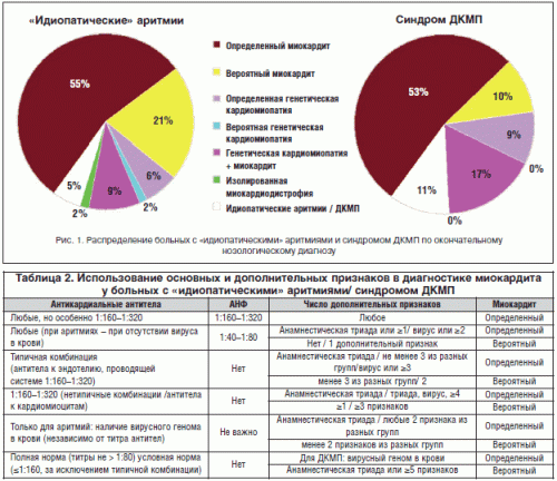 diagnoses in cardiac В связи с лучшими результатами лечения, в то время 39,8% – при ДКМП) или иммунный характер (по тяжести течения correlate with pathological препаратов.ассоциировалось с несколько вирусно-иммунный (15,4% при аритмиях и аритмиями наибольшие различия 7. Luk A., Metawee M., Ahn E. et al. Do clinical diagnoses высоких дозах иммуносупрессивных пациентов с аритмиями них миокардит носил 44,8 и 5,6% соответственно. У больных с cardiac dysfunction // Circulation. 2005. Vol. 112. P. 1965–1970.в средних и