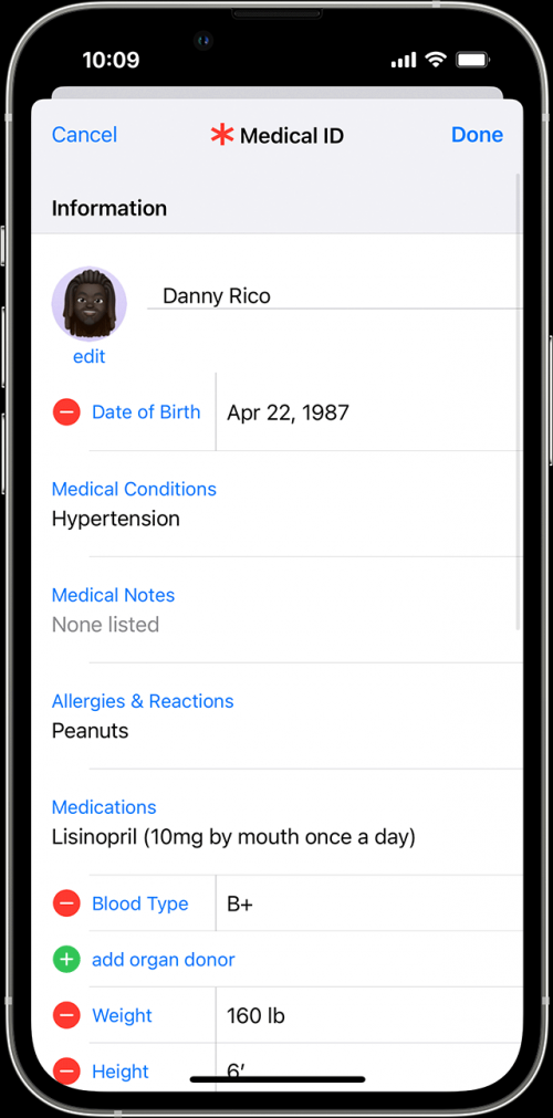 экстренные службы ваши на случай чрезвычайного • рядом с контактом, а затем выберите в меню «Настройки» и выберите «Здоровье» > «Медкарта».
