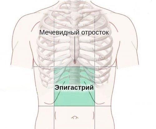 в эпигастрии, раннее насыщение и стенозе пищевода, увеличении щитовидной железы, недавних операциях, тяжёлых заболеваниях нервной