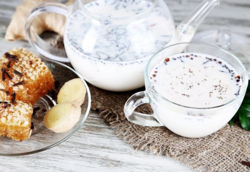 молоко и/или сгущенка, крепкий черный кофе, ваниль, мускатный орех, корица и гвоздика, водка или ром. Подают его холодным