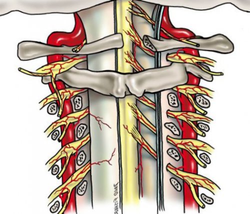 воздействуют остеофиты, артрозы суставов, смещение позвонков, унковертебральные артрозы, нестабильность шейных позвонков. При выходе из