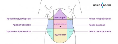 отдельных заболеваниях. Чаще всего причинами девять областей: эпигастральную, правую и левую