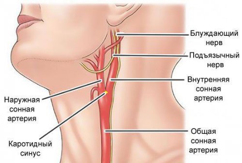сонные артерии.развитию обморока. Каротидный синус — это небольшое расширение