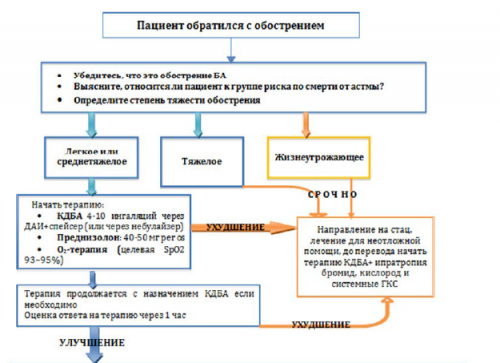 Лечение обострений БА у взрослых,