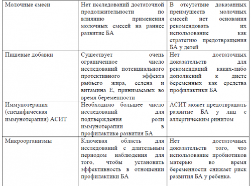 В случае доказанной аллергии на пищевой продукт или пищевую добавку исключение этого продукта может привести к снижению частоты обострений БА.СЛИТ – сублингвальная иммунотерапияКомментарии: Подростков с БА следует спросить, курят ли они. Необходимо нформировать о рисках табака дать совет о прекращении курения или рекомендовать не начинать курить.