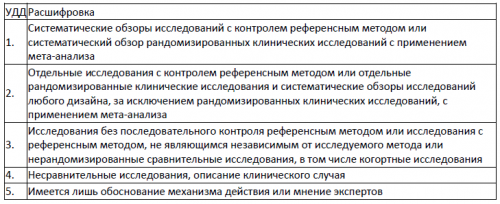 УДД• Метахолиновый тест на выявление БГР рекомендуется проводить в периоды экспозиции и элиминации производственных агентов .Если ингаляции КДБА требуются чаще чем каждые 4 часа, то следует отменить ДДБА.Уровень убедительности рекомендаций D (уровень достоверности доказательств – 3)и состояния организма 2. Шкала оценки уровней достоверности доказательств (УДД) для методов профилактики, лечения и реабилитации (профилактических, лечебных, реабилитационных вмешательств)Комментарии: Мониторинг ПСВ обладает высокой степенью чувствительности и специфичности.Уровень убедительности рекомендаций А (уровень достоверности доказательств – 2)• Выбор ингаляционного устройства для терапии стабильной БА рекомендуется основывать на предпочтении пациента и оценке правильности использования ингалятора [83,84].с учетом заболевания 1. Шкала оценки уровней достоверности доказательств (УДД) для методов диагностики (диагностических вмешательств)