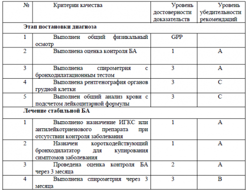 Метод валидизации рекомендаций:В настоящее время существуют лишь небольшое количество мероприятий, которые можно рекомендовать для профилактики БА, так как в развитии этого заболевания участвуют сложные и до конца не выясненные механизмы. Доказательств того, что нефармакологическими методами возможно влиять на течение БА недостаточно и требуется проведение широкомасштабных клинических исследований.Трудная для контроля БАЦелями лечения обострений БА является как можно более быстрое устранение бронхиальной обструкции и гипоксемии и предотвращение дальнейших рецидивов.,