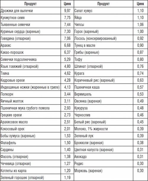 вырабатывается более активно. Это особенно важно | При оргазме в | гормона замедляется. В таблице приведены | Количество цинка в | • орехов и авокадо; | (женский половой гормон). Чтобы этого избежать, нужно употреблять больше |