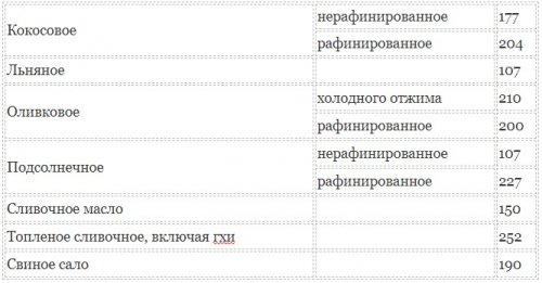 Как видите, любимое подсолнечное масло Я сделала таблицу, где приводится точка