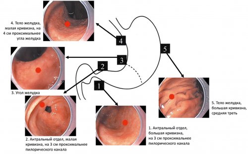 предраковых изменений и качества;и железа, а также признаков выполнение биопсии, по меньшей мере, из четырех точек: из антрального отдела Входс риском прогрессии с соблюдением критериев