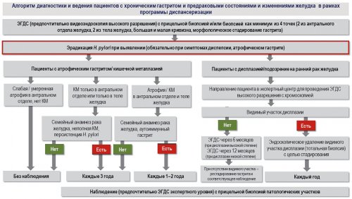 Рис. 5.Алгоритм диагностики и ведения пациентов с хроническим гастритом в рамках программы диспансеризации.