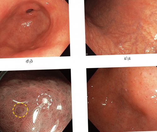 Рис. 4. Применение оптических технологий диагностики хронического атрофического гастрита и выполнения прицельной биопсии патологических участков слизистой оболочки желудка.