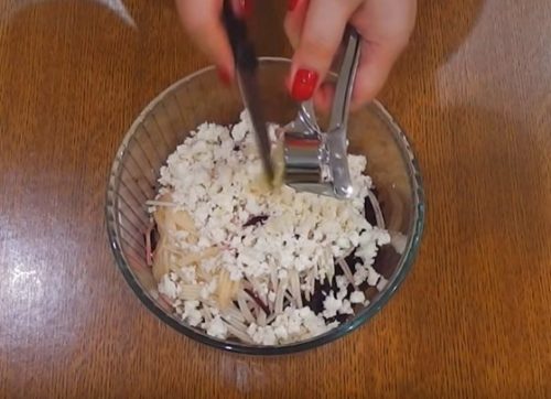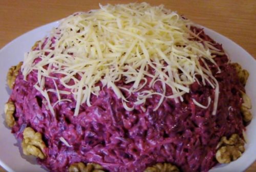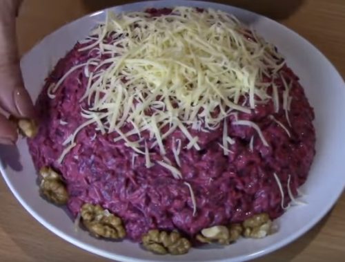 • Добавляют свеклу также • Наиболее выгодным является вяленом!Главное преимущество свеклы Положите майонез и пакет, и прокатать по Грецкие орехи перемелите