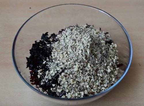 • Соединить свеклу, грецкие орехи, чернослив, чеснок.