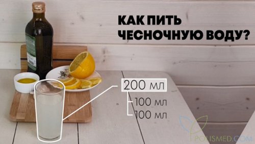 варианты применения снадобий. Чеснок с водой постоянно взбалтывать