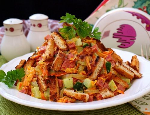 Огурцы и крабовые | 75 мл растительного | Сухарики из чёрного | |||