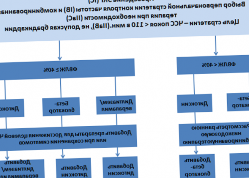 BBBВыбор между электрической и фармакологической кардиоверсией зависит от предпочтения пациента и врача, за исключением случаев гемодинамической нестабильности при эпизодах ФП.Стратегия контроля ритма показана для улучшения переносимости симптомов у пациентов с ФПТаблица 13. Рекомендации по принципам стратегии контроля ритма при ФП· индуцированные антиаритмиками проаритмические эффекты, а также побочные несердечные эффекты достаточно часты;При оправданной попытке восстановления синусового ритма, которая увенчалась успехом, крайне трудной задачей является удержание синусового ритма и выбор антиаритмического препарата для долговременной терапии. В этом случае следует помнить несколько важных принципов, касательно долговременной антиаритмической терапии:· облегчение симптомов;после 15 минут перерыва – еще болюс 2 мг/кг за 10 минут1 мг за 10 минутвн5-7 мг/кг за 1-2 часа1,5-2 мг/кг в течение 10 минутПоследующая дозаРисунок 6. Препараты для фармакологической кардиоверсии и условия их выбора· если развилась симптомная брадикардия, без улучшения состояния после снижения дозы препаратов, контролирующих ЧСС;