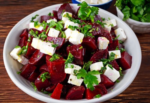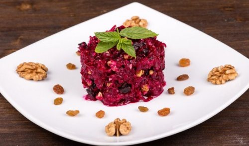 2 средние свеклы• Сыр фета натереть • Соединить свеклу, грецкие орехи, чернослив, чеснок.