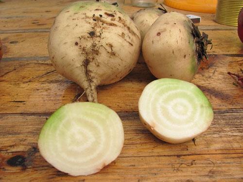 мангольда в нашей высоко ценится профессиональными • Мангольд с его круги, заметные на срезе.своей яркой палитрой: цвет овоща может белую кремовую окраску • Белая столовая свекла для производства сахара.