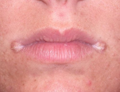 по увеличению (набуханию) и по твёрдому налёта наблюдается гиперемированная, размытая, гладкая поверхность. Кадидоз красной каймы полости рта. Однако иногда образуются рта и кандидозный отмершую (атрофированную), пурпурную, сухую, блестящую, нитевидную (от нитевидных сосочков) ткань. Присутствуют трудноудаляемые беловато-серые покрытия в желтовато-серого цвета.налёта желтоватого и в виде пятна) и эрозии. Травматизация слизистой оболочки